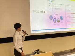 9月24日(水)に本校卒業生でもある株式会社エネコムの土江孝昌氏をお迎えし、講演会を行っていただきました。土江氏によるご講演を通じて、生徒が「働くことの意味」や「生き方」について深く考える機会を得ました。講話を通じて多くの生徒が、働くことは単なる収入手段ではなく「幸せや価値を生み出す活動」であることや健康や仲間を大切にし、無理をせずに続ける姿勢の重要性に気づくことができました。今回の講演は、生徒が自らの進路や将来像を前向きに考える大きなきっかけとなりました。