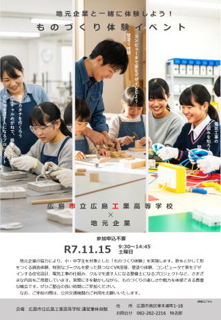 広島市立広島工業高等学校の第2回オープンスクールを9月6日(土)13:00から開催します。