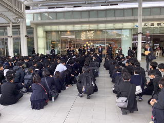 晴天に恵まれ、1年生は宮島、2年生は平和記念公園、3年生は岩国やアクアス、倉敷などに行ってきました。宮島の弥山に登った1年生は、登山後の達成感に溢れ、生徒同士との絆も深まったようでした。平和学習に参加した2年生は、被爆の実相に触れ、平和について深く考えることができたと思います。岩国に行った3年生は、日本を代表す木造橋である錦帯橋に行きました。精巧で独創的な構造で、歴史的にも価値ある橋を渡ることで、ものづくりの素晴らしさを感じたようでした。