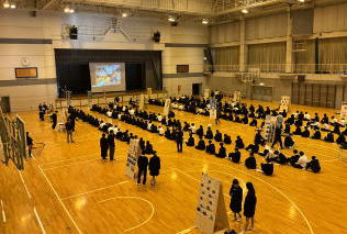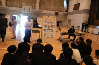 11月14日(金)に課題研究中間発表会を実施しました。1・2年生からは「専門分野の内容だったが興味を持って聞くことができた」「先輩の研究の進め方が参考になった」などの感想が寄せられ、発表を通して多くの刺激を受けた様子がうかがえました。また、広島大学大学院 人間社会科学研究科 准教授の谷田親彦様をお招きし、講評をいただきました。研究内容への助言に加え、より伝わるポスターを作るためのポイントについてもご指導いただき、生徒たちにとって大変有意義な時間となりました。
