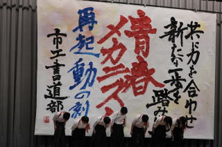 8月20~25日に広島天満書道祭が開催され、広島市西区天満町の天満宮境内にて作品が展示されました。書道部が、団体として学校賞を受賞しました。さらに、電気科3年の片岡隼人さんが広島市議会議長賞を、自動車科2年の河村幸多朗さんがホームテレビ賞を受賞しました。日々研鑽を重ねてきた賜物と思います。おめでとうございます。
