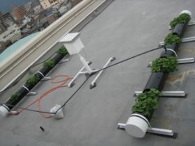 環境班:プールの水質検査、プールのヘドロの肥料化とそれを用いた植物の栽培実験、容器による蓮の花を育てる実験、藻の栽培実験、ペットボトルアクアリウムプランターの製作。
